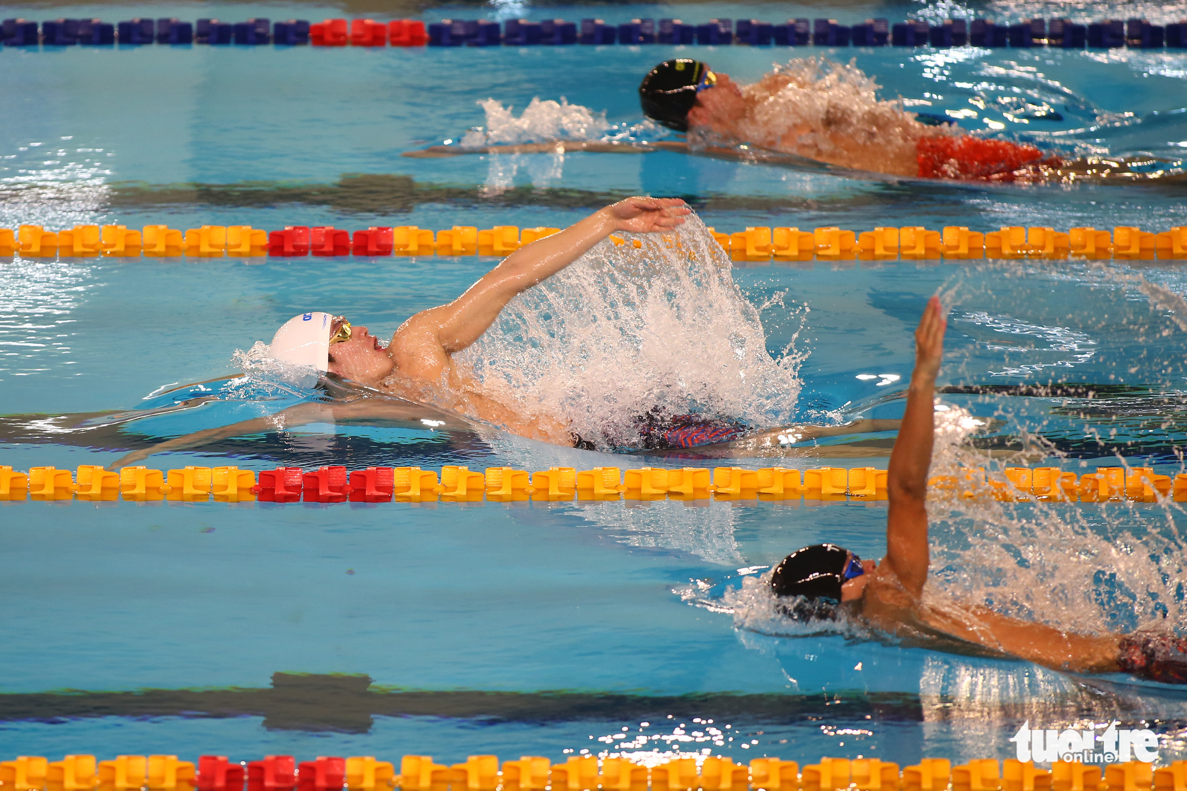 Bước sang nội dung thứ hai 50m bướm nam, màn thi đấu của Lê Nguyễn Paul (An Giang), Lương Jeremie (TP.HCM) và Nguyễn Hoàng Khang (Vĩnh Long) tạo sự phấn khích dành cho hàng trăm khán giả đến Cung thể thao dưới nước Mỹ Đình xem trực tiếp các phần thi.