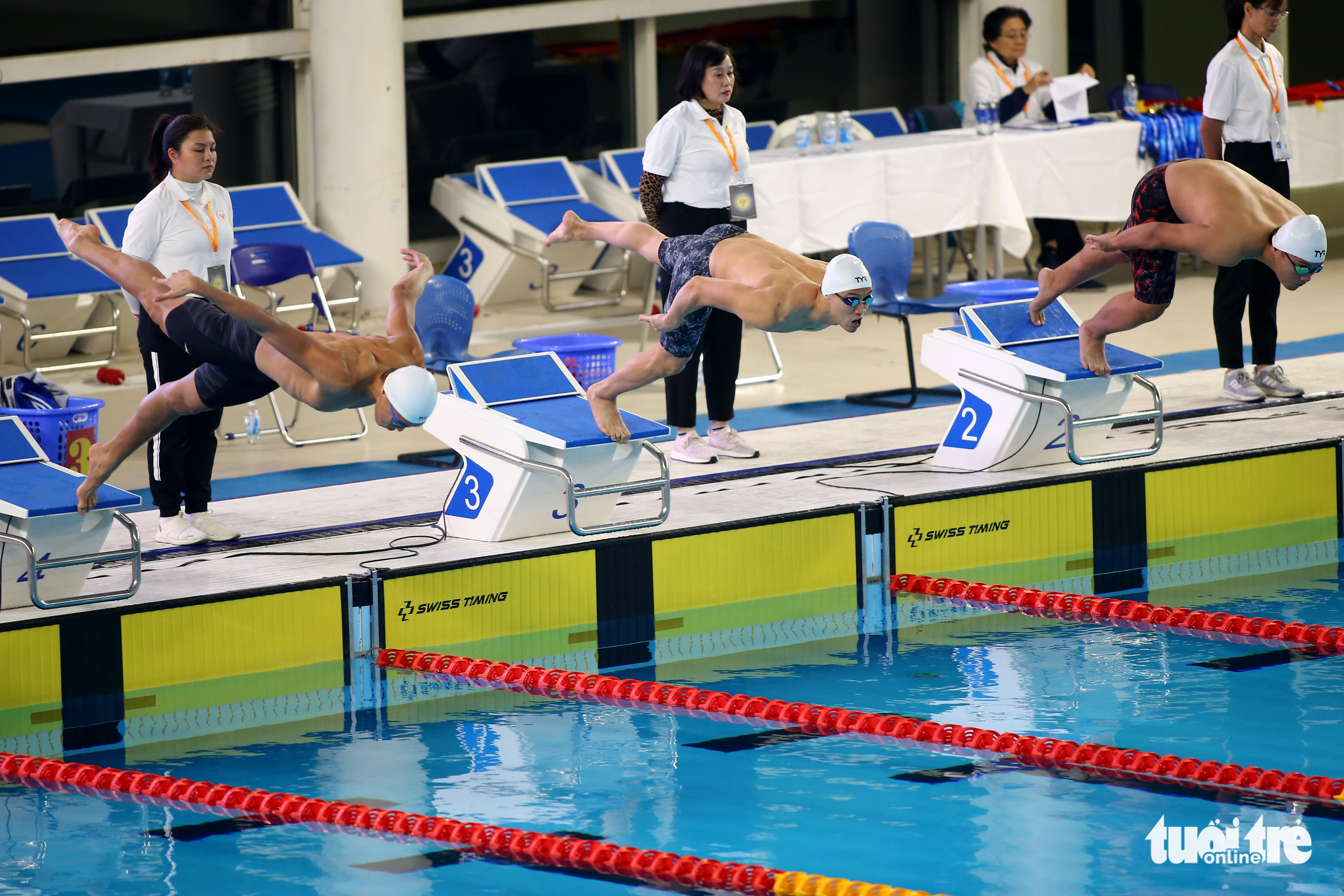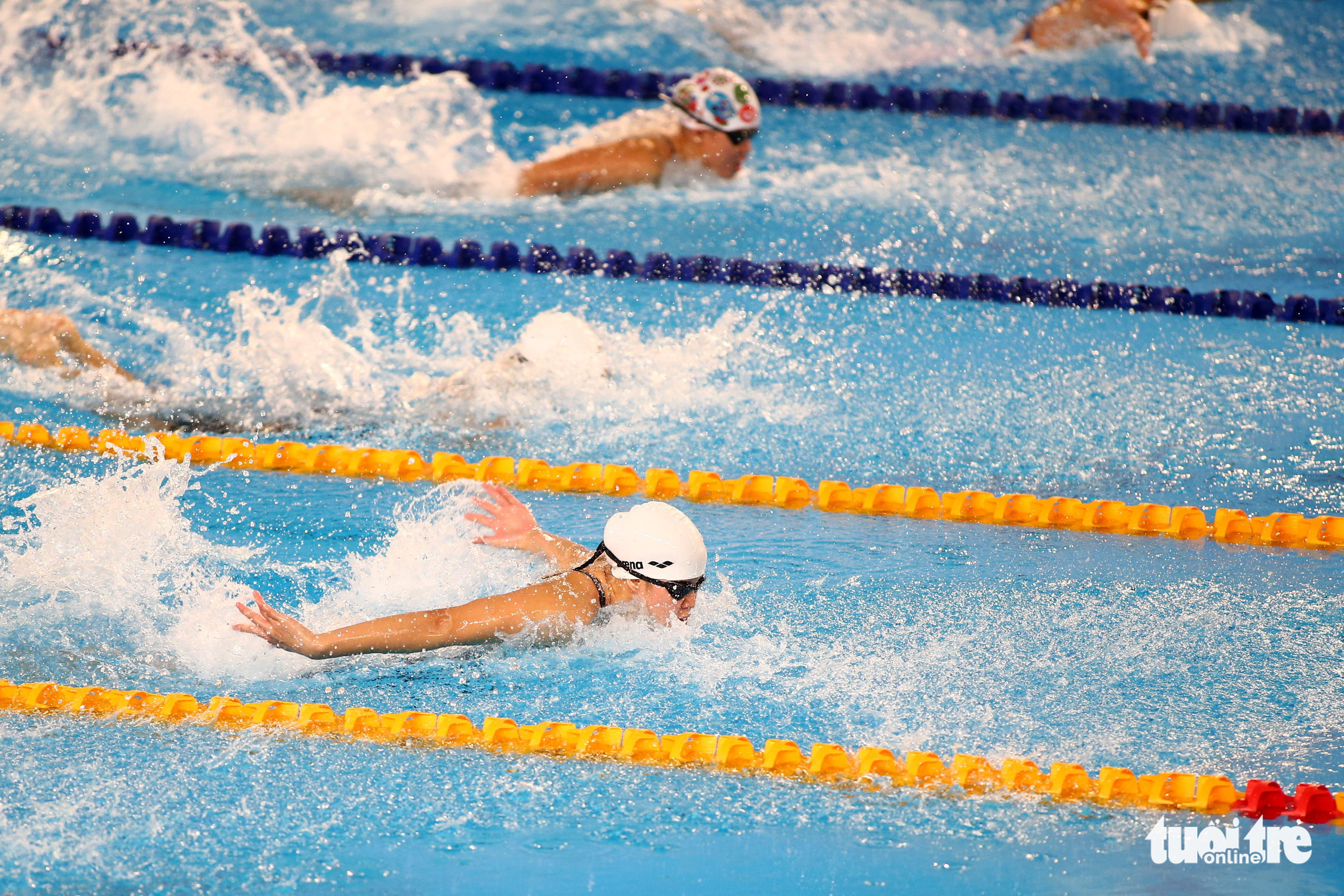 Lê Nguyễn Paul (làn 3) không thể bảo vệ thành công tấm HCV đại hội tại nội dung 50m bướm – Ảnh: H.TÙNG